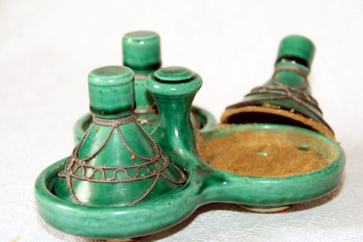 In Südägypten – Nubien – gibt es wieder eine eigene Küche, darunter Hawauschi (mit gebratenem Hackfleisch gefülltes Fladenbrot) sehr lecker! Oder Tagen. Tagen ist die ägyptische Tadjine. Tagen spricht man wie es geschrieben wird, Tadjine wird ja bekanntlich Tadschien gesprochen. Das kommt daher, weil die Ägypter das arabische „dsch“ als „g“ aussprechen. Tagen ist aber mehr in Südägypten verbreitet (in Kairo weniger) und sieht auch anders aus als die marokkanische Tadjine: ein kleiner runder Tonteller, eher eine Schale mit steilen Wänden. Äußerlich nicht mit der nordafrikanischen / marokkanischen Tadjine vergleichbar und mit flachem Deckel serviert. Es gibt offiziell auch weniger Varianten: Fleischtagen, Gemüsetagen, Nubische Tagen….