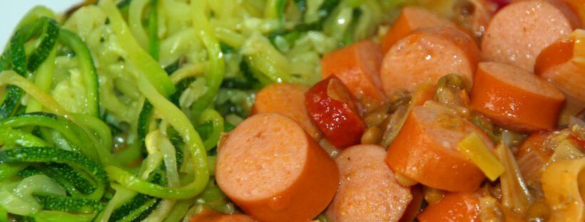 Immer wieder gerne gegessen, vor allem bei Kindern ist es sehr beliebt. Statt des üblichen Mais aus der Dose habe ich Berglinsen hinzugefügt. Mehl zum Andicken braucht es natürlich sowieso nicht und durch die Linsen wird es automatisch etwas sämiger, ansonsten könnte man 1/4 TL Guakernmehl hinzufügen. Das Ketchup ist logischerweise ohne Zucker! 400 g … Weiterlesen Würstchengulasch Low Carb