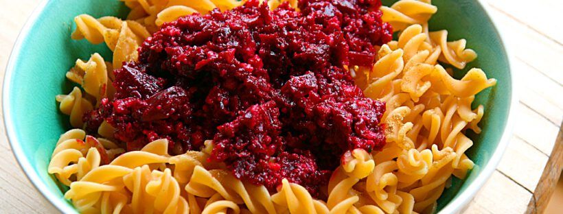 Nudeln mit Rote Bete -Walnuss-Pesto