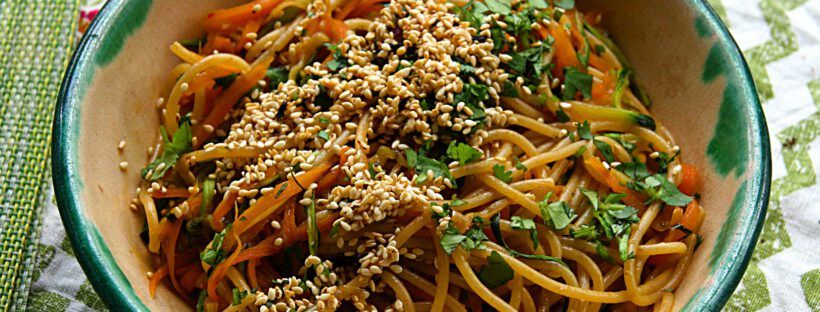 Mit Vollkornspaghetti oder - noch besser - Linsenspaghetti ist das ein tolles Low Carb Essen. für 2 100 g Vollkorn-Dinkelspaghetti oder Linsenspaghetti Salz 300 g Karotten 300 g Zucchini 1 Bund glatte Petersilie, fein gehackt 2 EL Sesamsamen Öl 4 EL Sojasoße 4 EL Gemüsebrühe 2 TL Sesamöl 1 TL heller Essig (z.B. Reisessig, Balsamico … Weiterlesen Spaghetti „Asia“ Low Carb