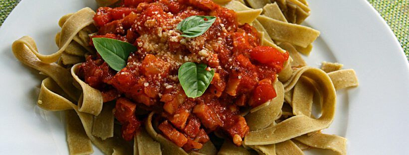 Schabzigerklee-Tagliatelle aus Kichererbsenmehl mit Tomatensauce – Low Carb