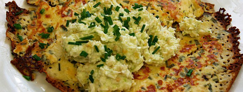 Ungewöhnlich, aber sehr lecker! Das extravagante Ayurveda Frühstück, scharf und knusprig. für 2 für die Pfannkuchen ca 100 g Kichererbsenmehl ca 50 g Mandelmehl 1/2 TL Guakernmehl (oder 1 Ei) 250 ml Wasser oder Haferdrink 1 TL Zitronensaft 1 TL frische Kräuter, gehackt (z.B. Schnittlauch) Ghee oder Butterschmalz Alles Klümpchenfrei zu einem dünnflüssigen Teig vermischen, … Weiterlesen Kräuter-Pfannkuchen low carb mit scharfem Kokos-Chutney