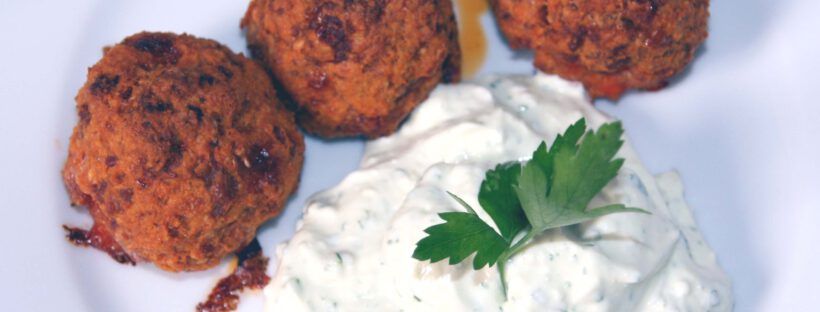 Chorizobällchen Low Carb mit Quarkdip und Salat
