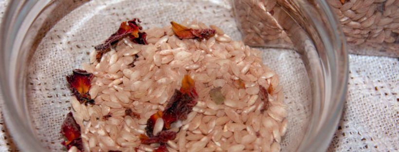 Eine sehr leckere Beilage zu gebratenem Fleisch oder auch zu Gemüse ist ein Rosen-Risotto. Mit Rotwein gekocht erhält es seine schöne rote Farbe und den besonderen Geschmack. Für 2 Personen ca. 125 g Rosen-Risotto (Risottoreis mit getrockneten Rosenblüten) 1 Knoblauchzehe, fein gehackt 1 Schalotte, fein gehackt etwas Brühe Salz1/8-1/4 l Rotwein Kokosöl oder Olivenöl Zwiebel … Weiterlesen Rosen-Risotto