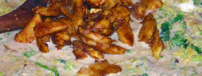 Es schmeckt wesentlich besser, als es aussieht, denn leider bleibt der Wirsing ja nicht knackig grün, umso weniger, wenn gelbes Currypulver dazu kommt. Sehr gesund, sehr sättigend, sehr lecker - und wenn man einen Mixer zum Kleinhacken hat, auch sehr schnell. Für 2 Personen 2 Lachsstücke 1 große Zwiebel, fein gehackt 1 - 2 Knoblauchzehen, … Weiterlesen Wirsing-Apfel-Curry mit Lachs Low Carb