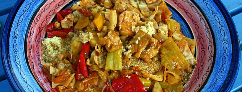 Am besten verwendet man hier eine Couscoussiere. Ansonsten muß man sich mit einem Topf und einem passenden Sieb mit Deckel arrangieren. Der Couscous nimmt über dem Gemüse-Fisch-Dampf eben schon Geschmack auf, was bei Instant Couscous, den man nur aufgießen und quellen lassen muß, natürlich nicht funktioniert. Wenn der Topf luftdicht verschlossen ist (am besten mit … Weiterlesen Gemüse-Couscous mit Fisch