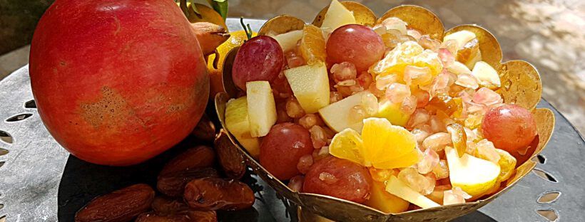 Jetzt ist wieder Erntezeit: Datteln, Granatäpfel, Äpfel, Mandarinen und Trauben sind zuckersüß und saftig. Da braucht es eigentlich keinen zusätzlichen Zucker mehr. Ein bis zwei Esslöffel Orangenblütenaroma oder Rosenwasser und ein Spritzer Zitronensaft reichen völlig aus, um das köstliche Aroma zu intensivieren. Am besten gut gekühlt aus dem Kühlschrank genießen! Zutaten:4 Granatäpfel1 Handvoll Datteln, entkernt, … Weiterlesen Herbstlicher Fruchtsalat